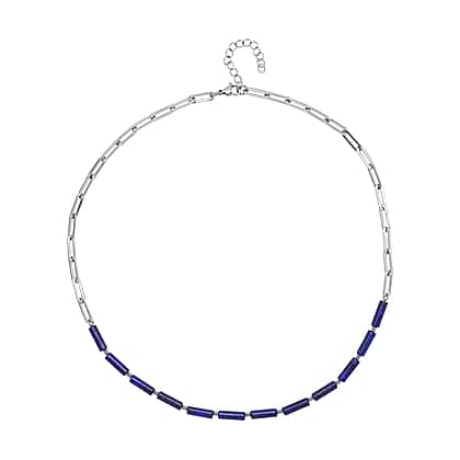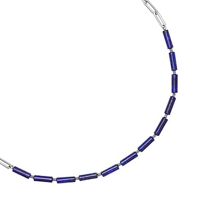 Lapis Lazuli Necklace (Size - 20 With 2 Inch Extender ) in Pure White Stainless Steel 36.00 Ct.