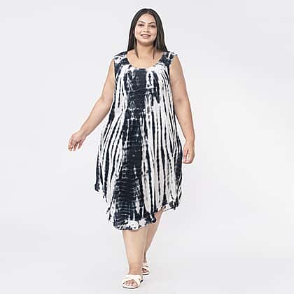 Tamsy 100% Viscose Tie Dye Dress (One Size,8-18) - Black