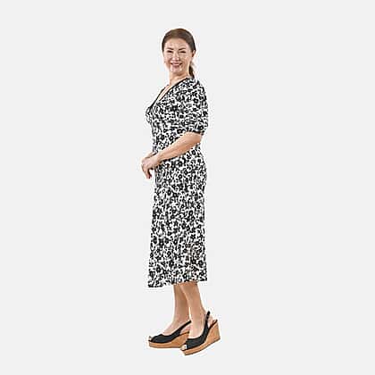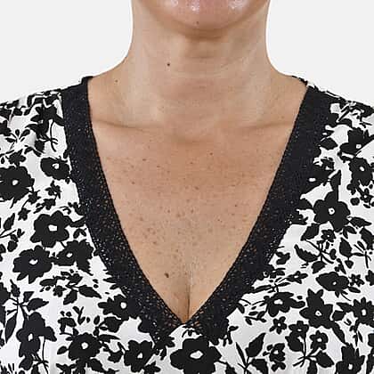 With its fresh floral print, this Tamsy lace trim dress with lace detailing offers a timeless look. It features a deep v-neckline with lace detailing and short sleeves with an elasticated design to add style. This dress has beautiful floral prints and soft fabric for easy wear all year round.