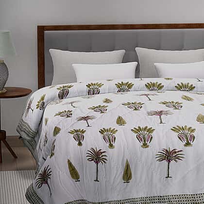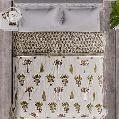 This hand-stitched Block Printed Cotton Voile 210 gsm blanket's exquisite texture and lightweight warmth make it perfect year-round bedding covering. Hand block printing is a historical printing technology noted for its simplicity and ease of use, and Rajasthan block printing has a traditional aesthetic. Well-known artisans create it in Rajasthan. The silky fabric is 200x200 cm in size and is composed of breathable cotton voile that makes it breathable.