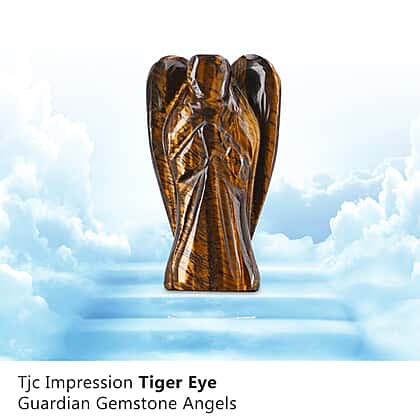 Hand Carved Tiger Eye Guardian Gemstone Angels - 5.5 cm