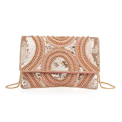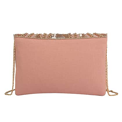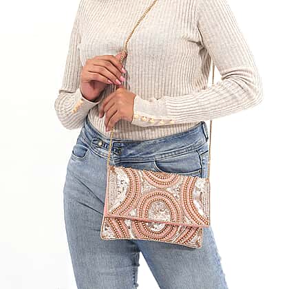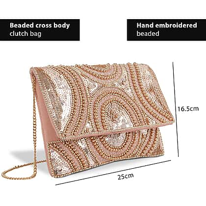 Hand embroidered Beaded Pattern Crossbody Clutch Bag with Shoulder Strap (Size 25x16 Cm) - Light Pink