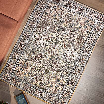Hand Made 100% Cotton Digital Printed Rug (Size 180x120 cm) - Peach & Multi