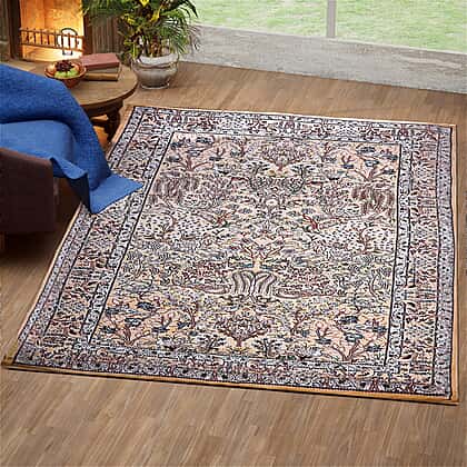 - The rug features printed design for a traditional look