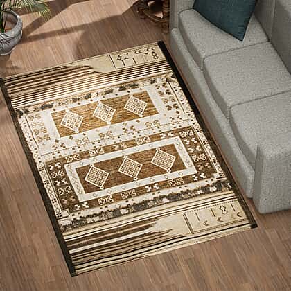 - The rug features printed design for a traditional look