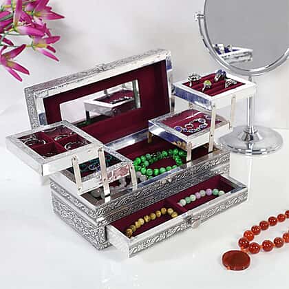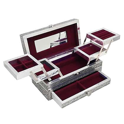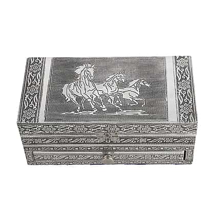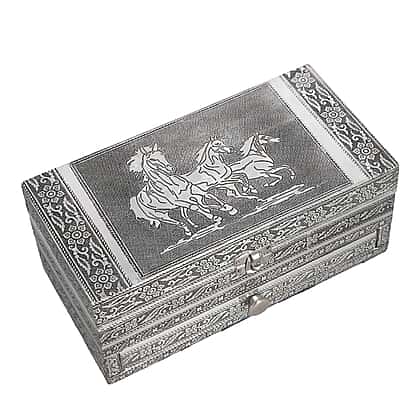 Hand Made 4 level Aluminium Horse Embossed Jewellery Box with Mirror(Size 25x12x10 cm) - Silver