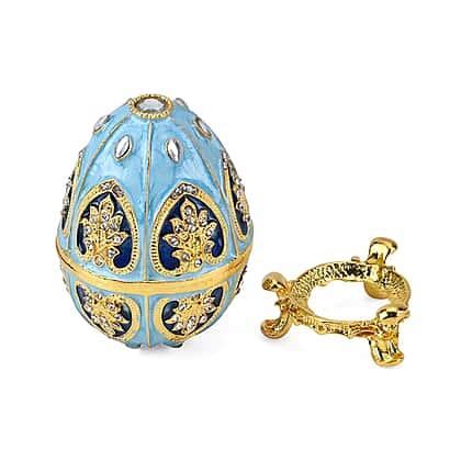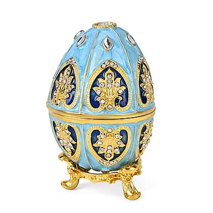 Hand-Painted Crystal Enamelled Easter Egg Trinket Box (Size 6x4 cm) - Blue & Gold