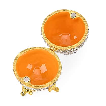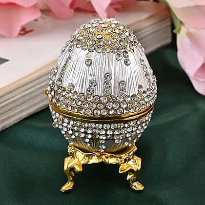 Hand-Painted Crystal Enamelled Easter Egg Trinket Box (Size 6x4 cm) - Silver & Gold