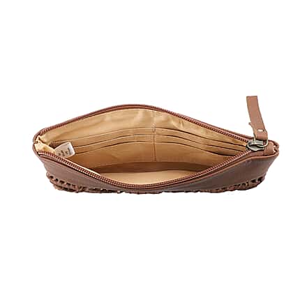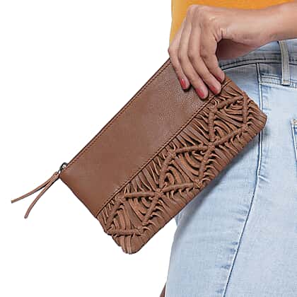 Hand Woven Macrame 100% Genuine Leather Clutch Wallet (Size 21x13cm) - Black