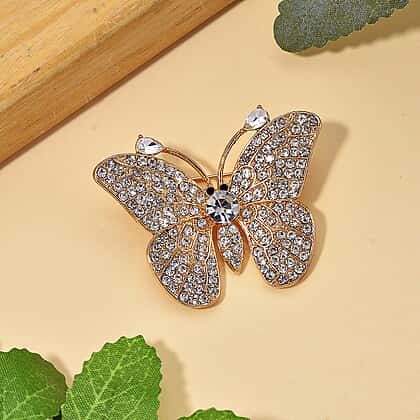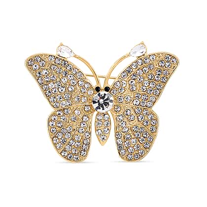 Uplift your look with this butterfly-inspired brooch, featuring Austrian black and white crystals in a yellow tone, reflecting nature's beauty. Shine with its intricate and delicate wing design, this piece, adorned with Austrian crystal in black and white hues, offers a play of lights. Expertly crafted in pure alloy in a yellow gold tone, ensuring durability and enduring shine. The brooch is very lightweight and comes with a secure clasp to offer comfort fit. A versatile piece, suitable for both casual and formal occasions. Whether you wear a coat, blouse, or scarf, this brooch will suit every piece, enhancing your outfit.