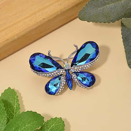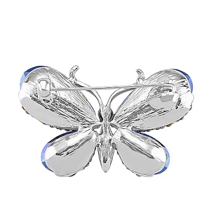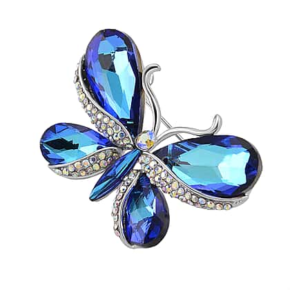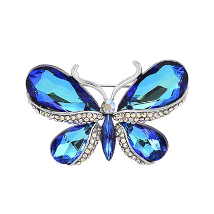 Austrian Blue Crystal & Australian White Mystic Color Crystal Butterfly Brooch in White Gold Colour Tone