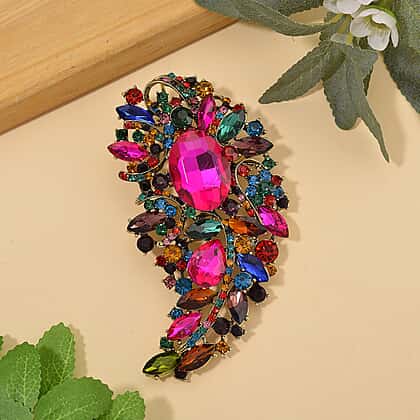 Austrian Multi Colour Crystal Brooch Cum Pendant in Gold Tone