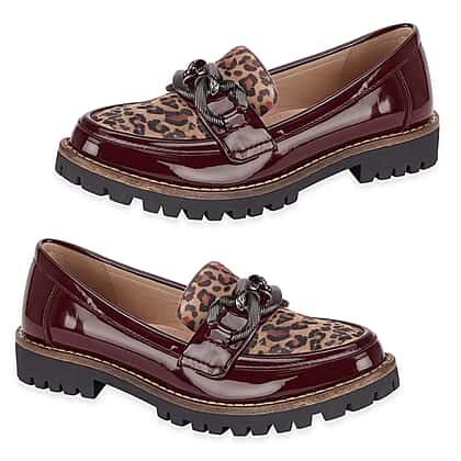 Faux Leather Bombay Leopard Loafers (Size 6) - Burgundy
