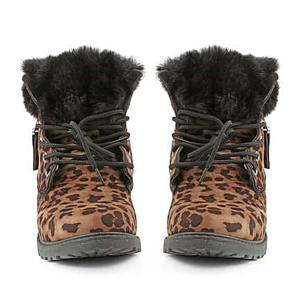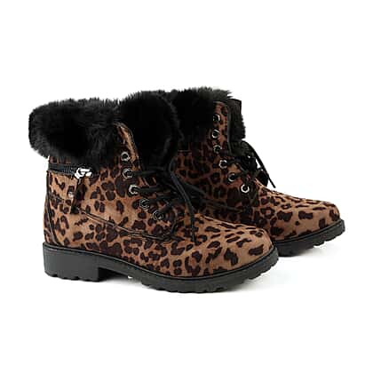Leopard Print Women Lace Up Ankle Boots (Size 8) - Brown