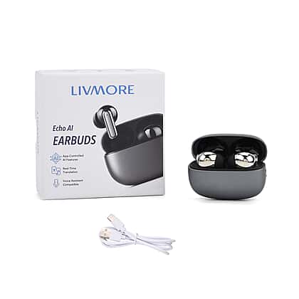 LIVMORE T108 TWS Bluetooth Translation Earphones | 300mAh Case, 4h Playtime - Black & Silver