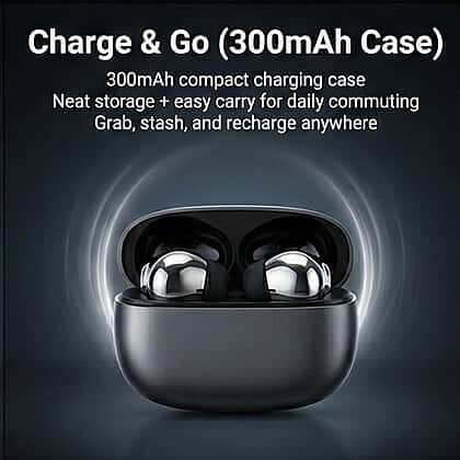 - Stores easily inside a compact 300mAh charging case.