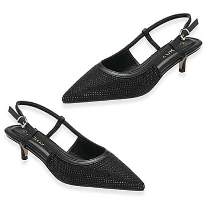 Lotus Bexley Slingback Pointed Toe Kitten Heel (Size 6) - Black