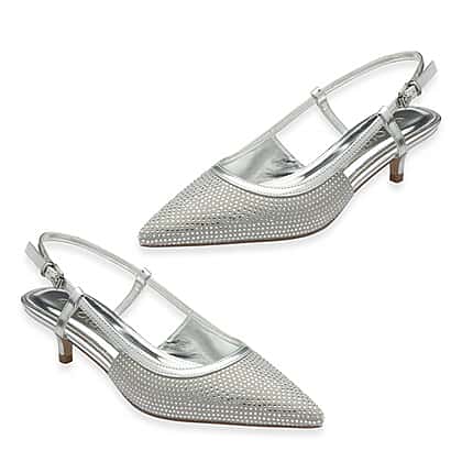Lotus Bexley Slingback Pointed Toe Kitten Heel (Size 8) - Silver