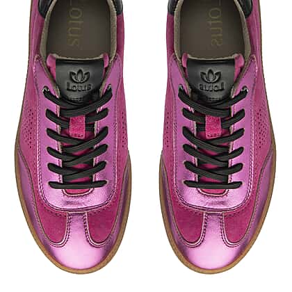 Bold, playful, and made to stand out, the Lotus Frapporta Ladies Leather Trainers bring a fashion-forward twist to everyday sneakers. Crafted from smooth leather with a high-shine metallic pink finish, these trainers instantly lift casual looks. The lace-up design offers a secure, comfortable fit, while the cushioned insole supports all-day wear. Set on a classic gum sole, they balance retro charm with modern attitude. Whether styled with denim, dresses, or athleisure, these trainers add a confident pop of colour to your off-duty wardrobe. Fun yet wearable, they’re perfect for women who like their comfort with a touch of glam.