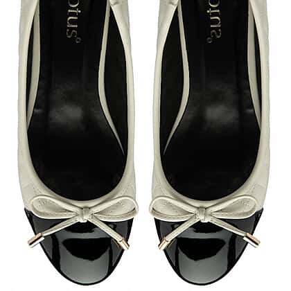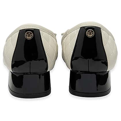 Lotus Rush Quilted Two-Tone Cap Toe Ballet Pumps With Block Heel (Size 6) - Cream & Black