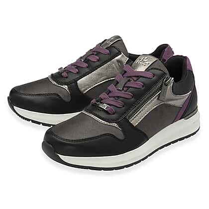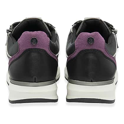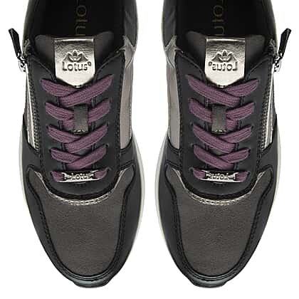 Sporty with a refined edge, the Lotus Venus Ladies Leather Trainers in black and purple are designed for everyday comfort with a modern look. Crafted from smooth leather with contrasting panels, this pair feels both practical and stylish. The lace-up fastening offers a secure fit, while the cushioned sole supports comfortable all-day wear. Subtle colour detailing adds interest without overpowering the design, making these trainers easy to style with casual and athleisure outfits alike.