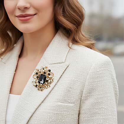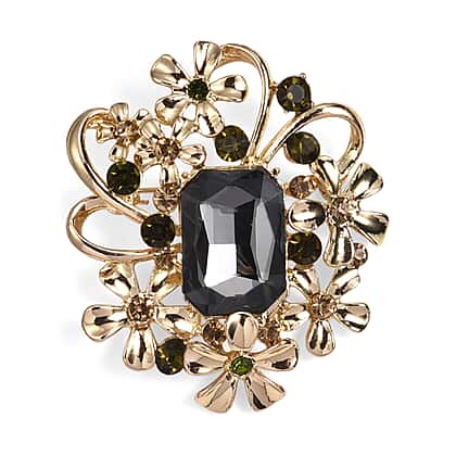 Multi Colour Crystal Brooch in Yellow Gold Plated