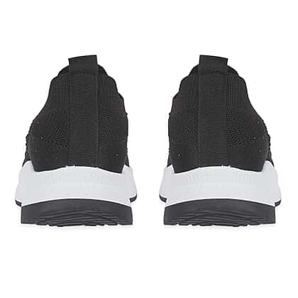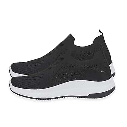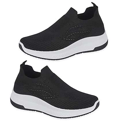 Step into comfort and subtle shine with slip-on shoes designed to keep your everyday style effortless and polished. These lightweight leisure shoes feature a flexible knit upper that adapts to your foot, offering a secure yet breathable fit throughout the day. The slip-on design makes them easy to wear, perfect for busy routines where convenience matters just as much as comfort. Decorative diamante detailing adds a gentle sparkle across the upper, giving the shoes a stylish edge while maintaining a clean and versatile look. Paired with a cushioned sole, they provide reliable support and help reduce strain during extended wear. The sleek black finish makes them easy to pair with a wide range of outfits, from casual looks to more put-together everyday styling. Choose a pair that combines comfort, style, and practicality in one simple step.