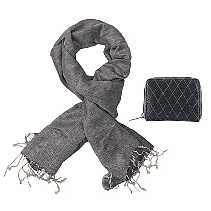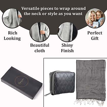Gift Box with RFID Protected Leather Wallet and Stole (Size 195x68 Cm) - Grey