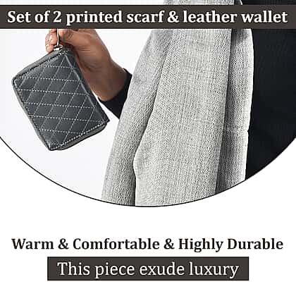 RFID Protected Leather Wallet and Stole (Size 195x68 Cm) - Grey