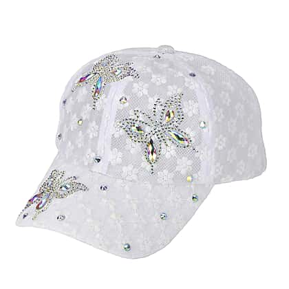 Rhinestones Cap with Butterfly Design - Powder