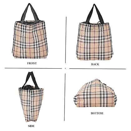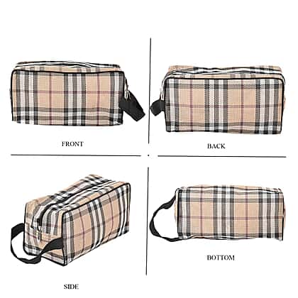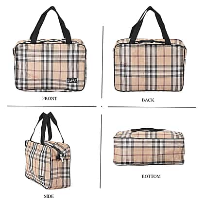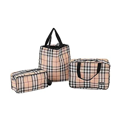 Set of 3 Check Pattern Travel Bag with Zipper & Handle Strap - Light Brown