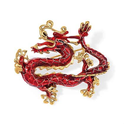 - Features red enamel on the body of the dragon, creating a striking piece.