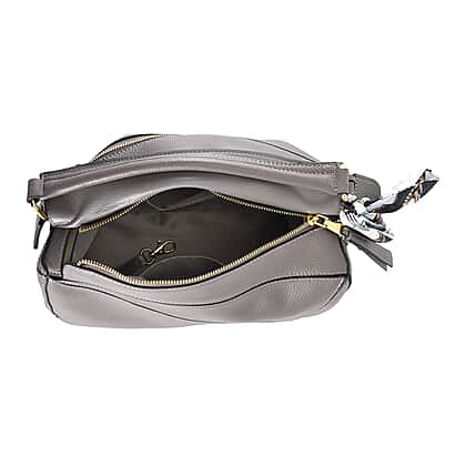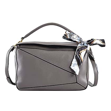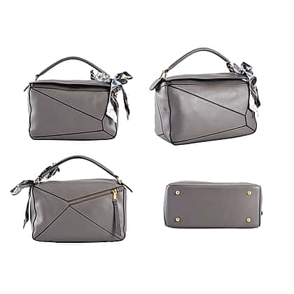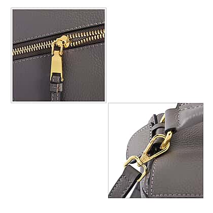 100% Genuine Leather Desginer Inspired Handbag with Detachable Long Strap - Grey