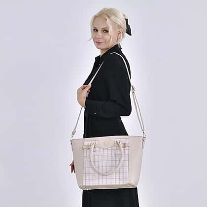 Elegant Checker Pattern Crossbody Bag With Handle Drop - Beige