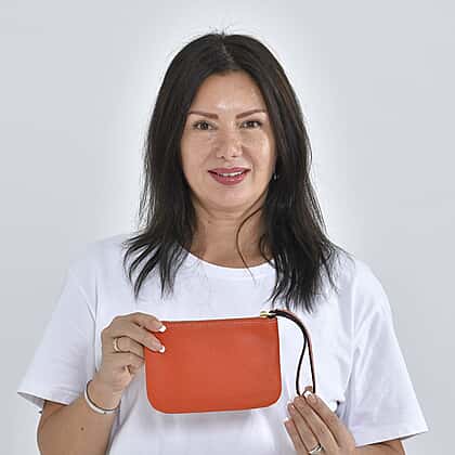100% Genuine Leather Alphabet E Wallet with RFID Protection - Orange