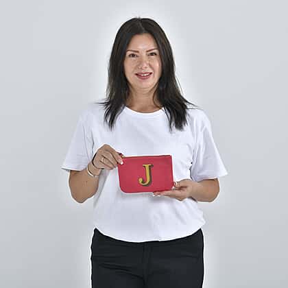 100% Genuine Leather J Letterpress Wristlet Clutch - Pink