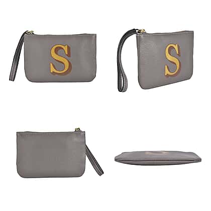 100% Genuine Leather Alphabet S Wallet with RFID Protection (Size 18x12 Cm) - Grey