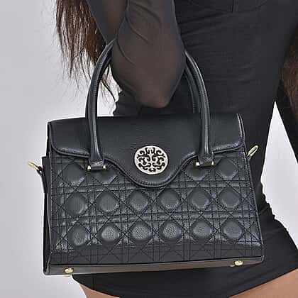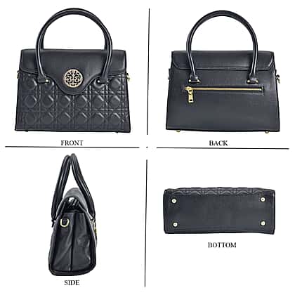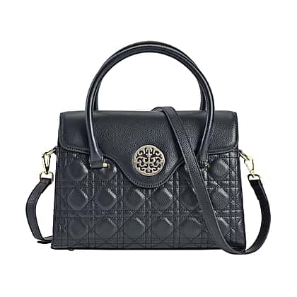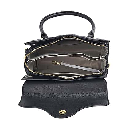 Genuine Leather Crossbody Bag with 2 Exterior Zipped Pockets & Shoulder Strap - Black