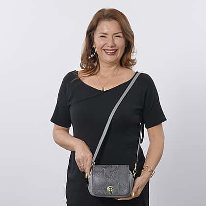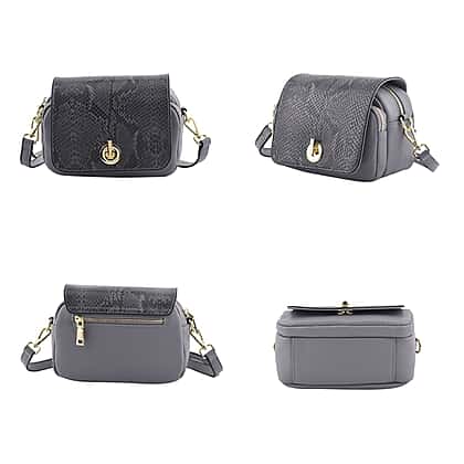 Paris Closeout Deal - 100% Genuine Leather Snake Pattern Crossbody Bag with Shoulder Strap - Grey