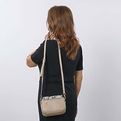 Paris Closeout Deal - 100% Genuine Leather Snake Pattern Crossbody Bag with Shoulder Strap - Nude