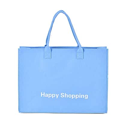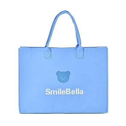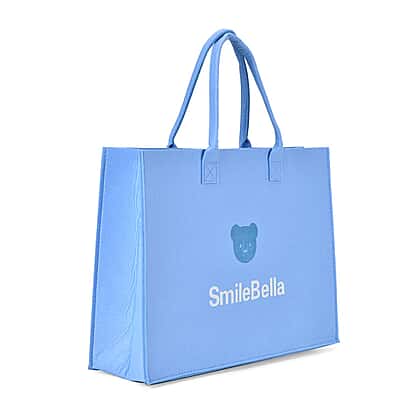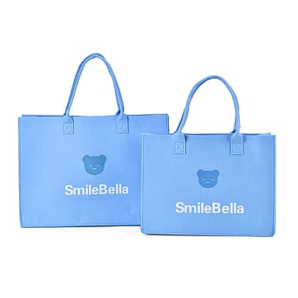 Set of 2 Felt Gift Printed (Bear, Smilebella, Happy Shopping) Tote Bag - Blue