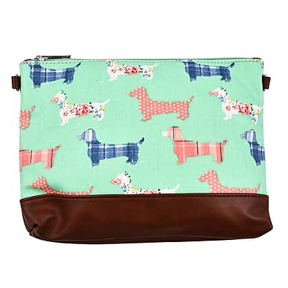 100% Cotton Canvas Dog Pattern Mini Crossbody Bag (Size 24x17x4 Cm) - Green