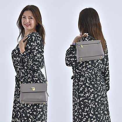 100% Genuine Leather Convertible Bag with Detachable Long Strap - Grey
