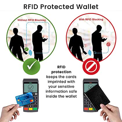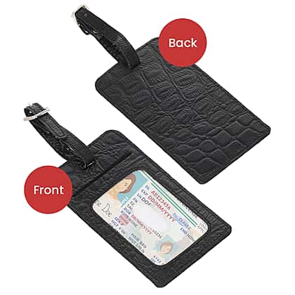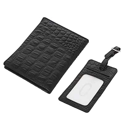 100% Genuine Leather Croc Embossed Pattern RFID Protected BI Fold Wallet with Luggage Tag - Black