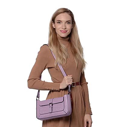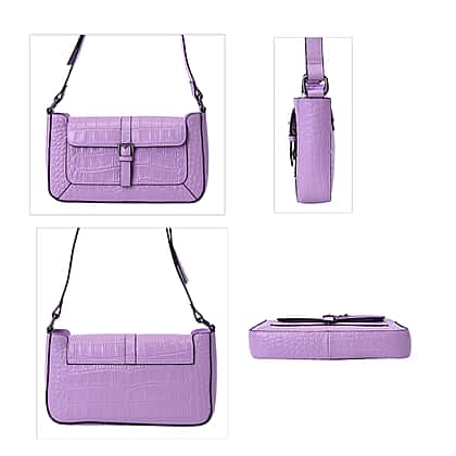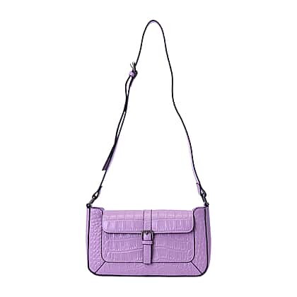 100% Genuine Leather Crocodile-Embossed Pattern Hobo Bag (28x5x16cm) with Adjustable Shoulder Strap - Light Purple