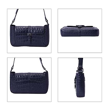 100% Genuine Leather Crocodile Embossed Pattern Hobo Bag with Adjustable Shoulder Strap Navy