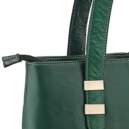 100% Genuine Leather Crocodile Embossed Tote Bag - Green