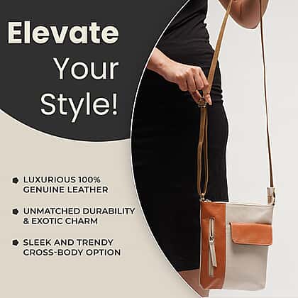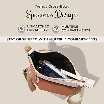 100% Genuine Leather Crossbody Bag With Adjustable Strap - Tan