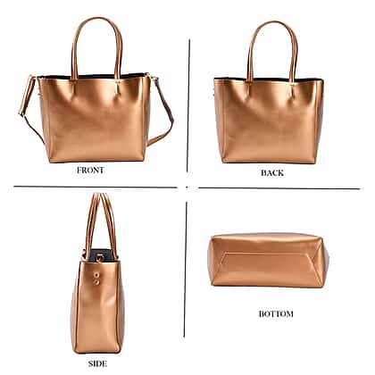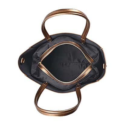 Genuine Leather Tote Bag with Detachable Zipped Lining - Metallic Gold