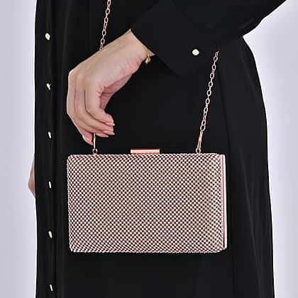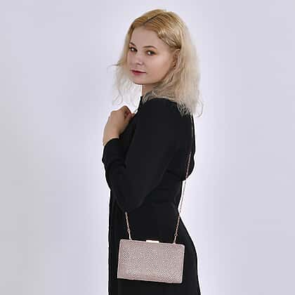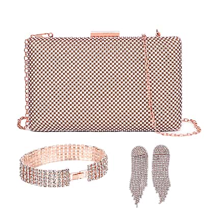 3 Pieces Crystal Accessory Set - Crystal Patterned Clutch, Sparkling Bracelet and Dangling Earrings